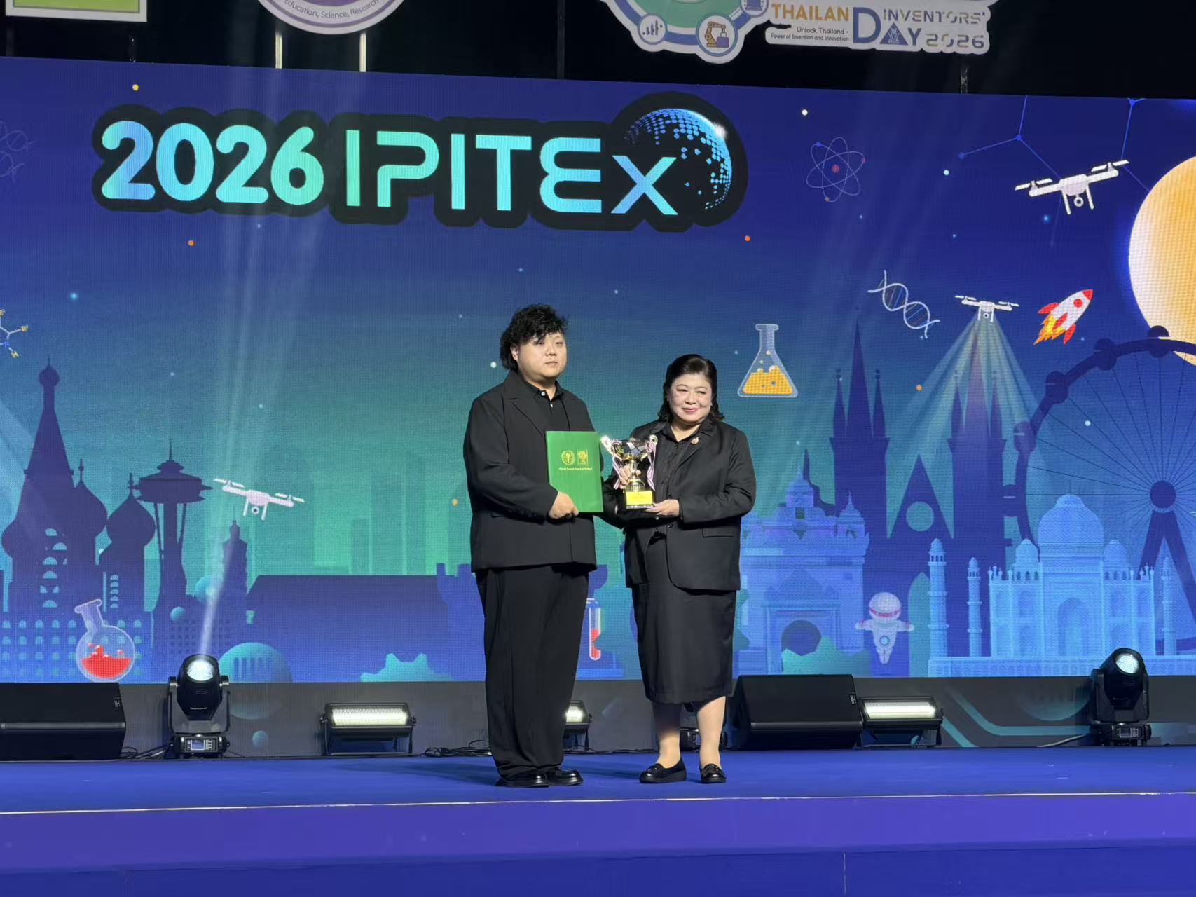在欢迎仪式上,帕瑞拉女士为各国展团团长颁发了特别贡献奖,感谢大家从世界各地不远万里来到泰国,积极参加2026年的泰国发明展。中国发明协会对本届泰国展成功举办表示祝贺,同时诚挚邀请她未来能够带着泰国的发明人和发明项目来中国参加我们的国际发明展和论坛。