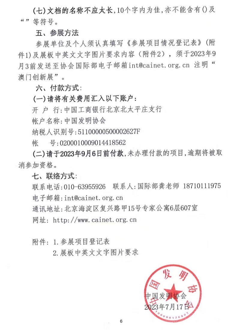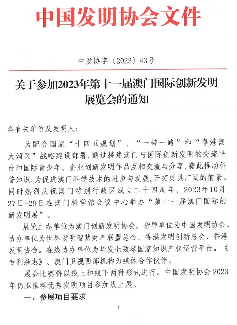 关于参加2023年第十一届澳门国际创新发明展览会的通知.pdf