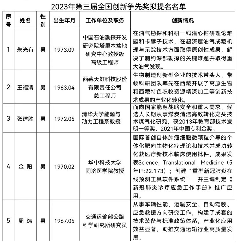 根据《人力资源社会保障部 中国科协 科技部 国务院国资委关于评选第三届全国创新争先奖的通知》(人社部函〔2023〕27号)要求,现将协会推荐申报情况予以公示。