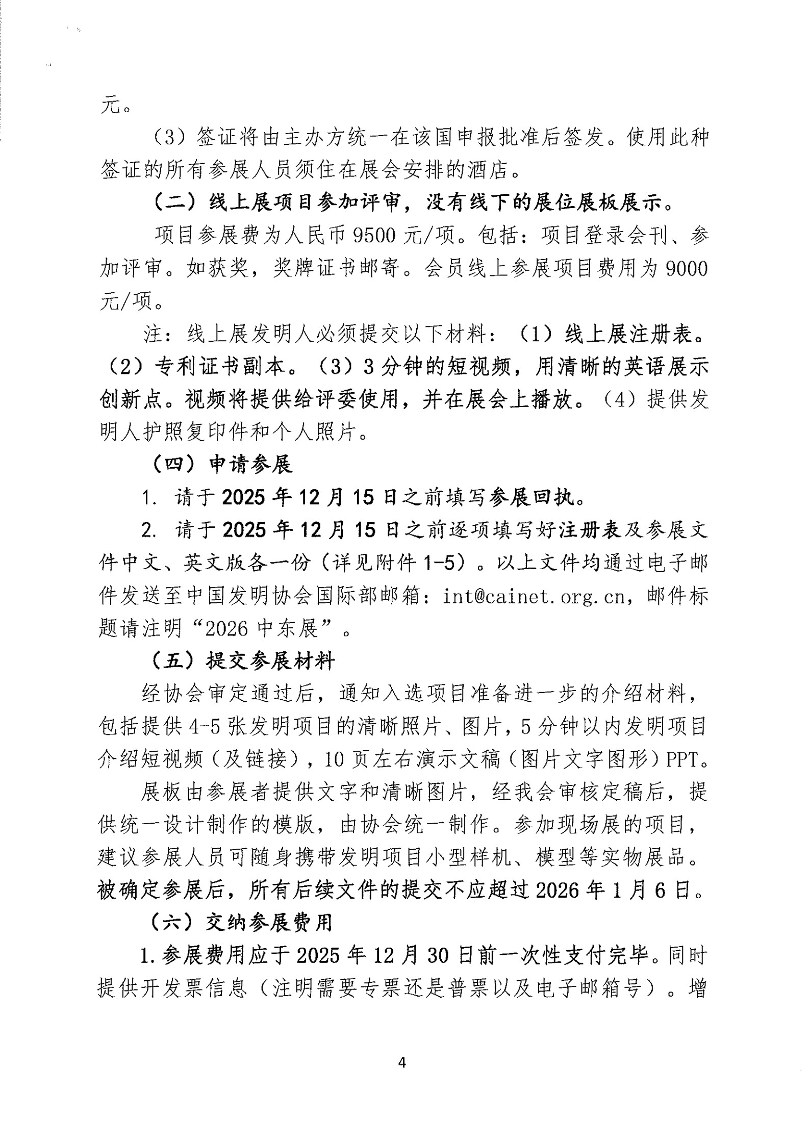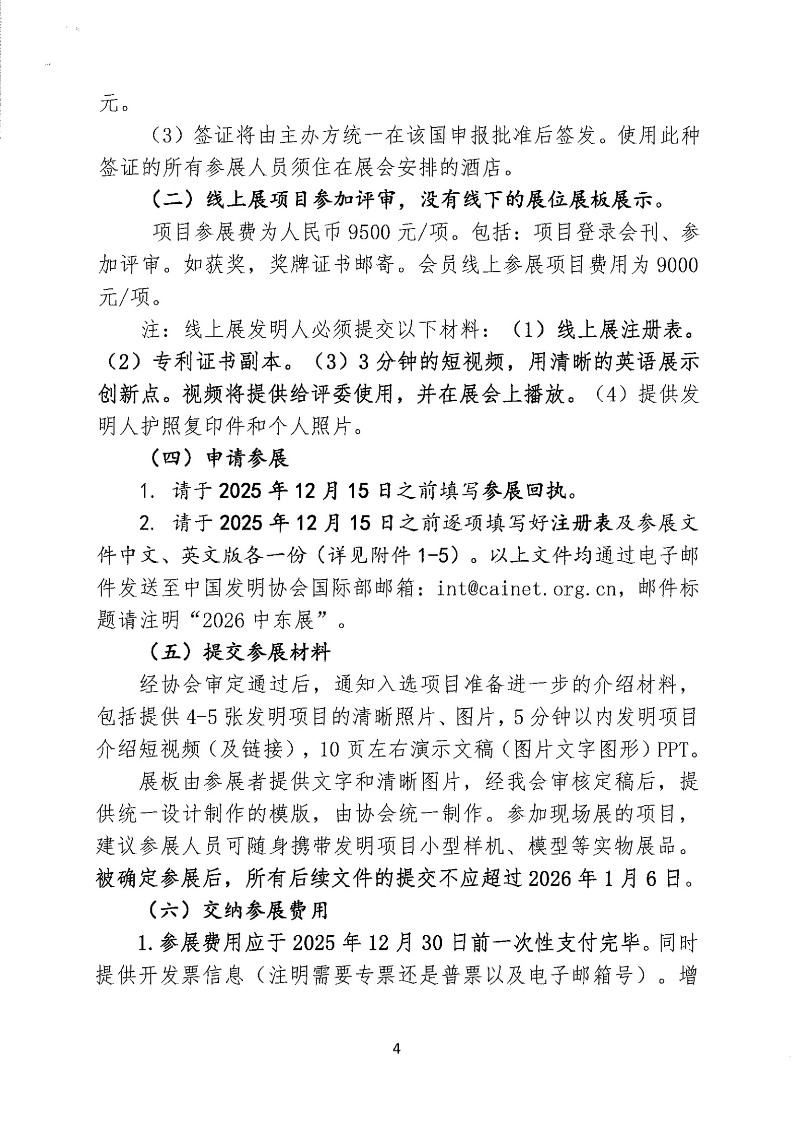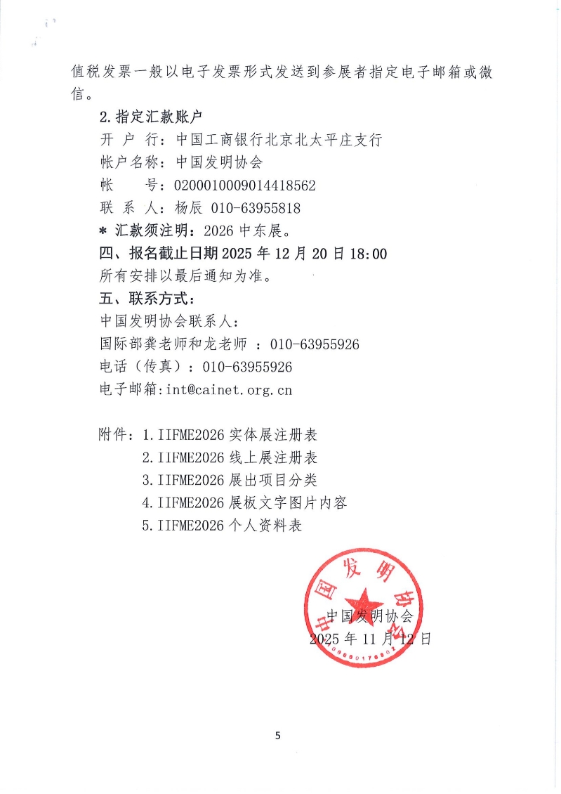 附件 1 中东展2026 实体展注册表 IIFME 2026 Registration Form.docx附件 2 中东展2026 线上展 注册表 IIFME 2026 ONLINE Registration Form.docx附件 3 中东展2026 发明项目分类.docx附件 4 2026展板文字图片内容.docx附件 5 中东展 2026 个人资料表.docx