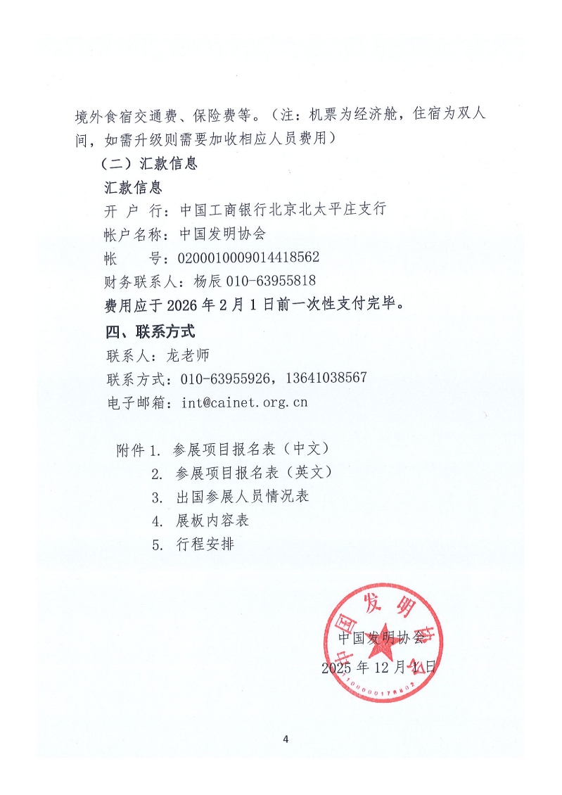 附件1 阿基米德展申请表中文.doc附件2 阿基米德展申请表英文.doc附件3 出国参展人员情况表.xlsx附件4 展板内容表.doc附件5 行程安排.docx