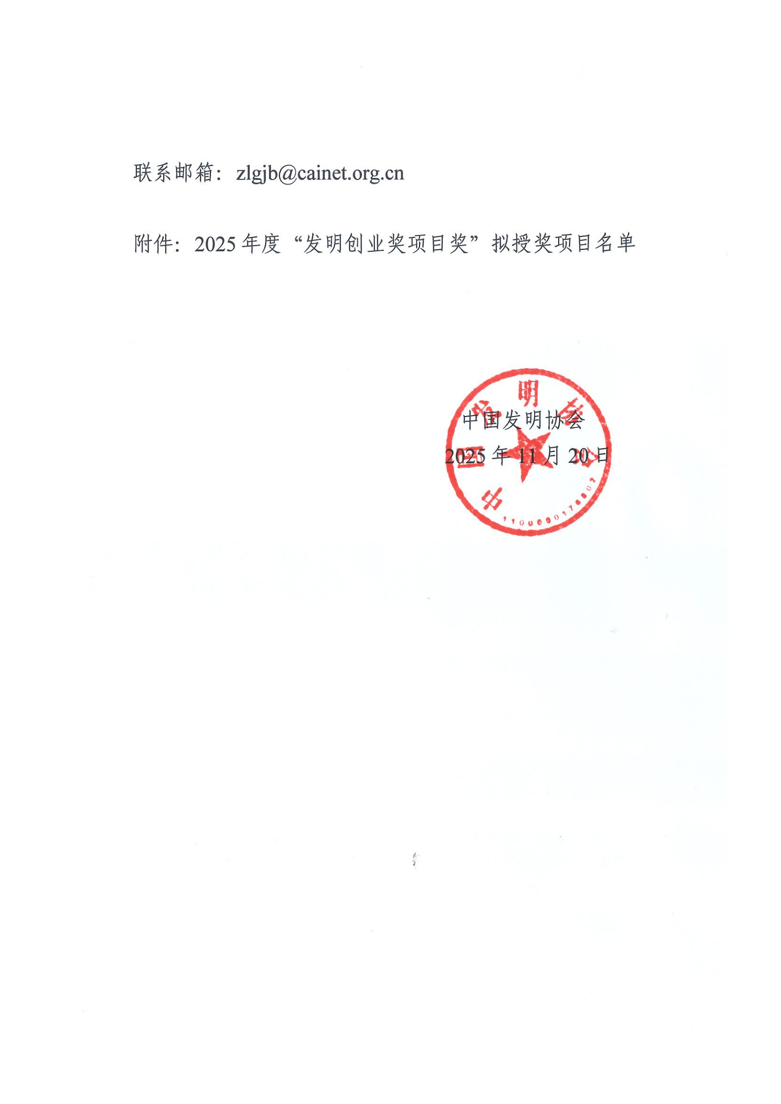 2025年度“发明创业奖项目奖”公示名单.pdf