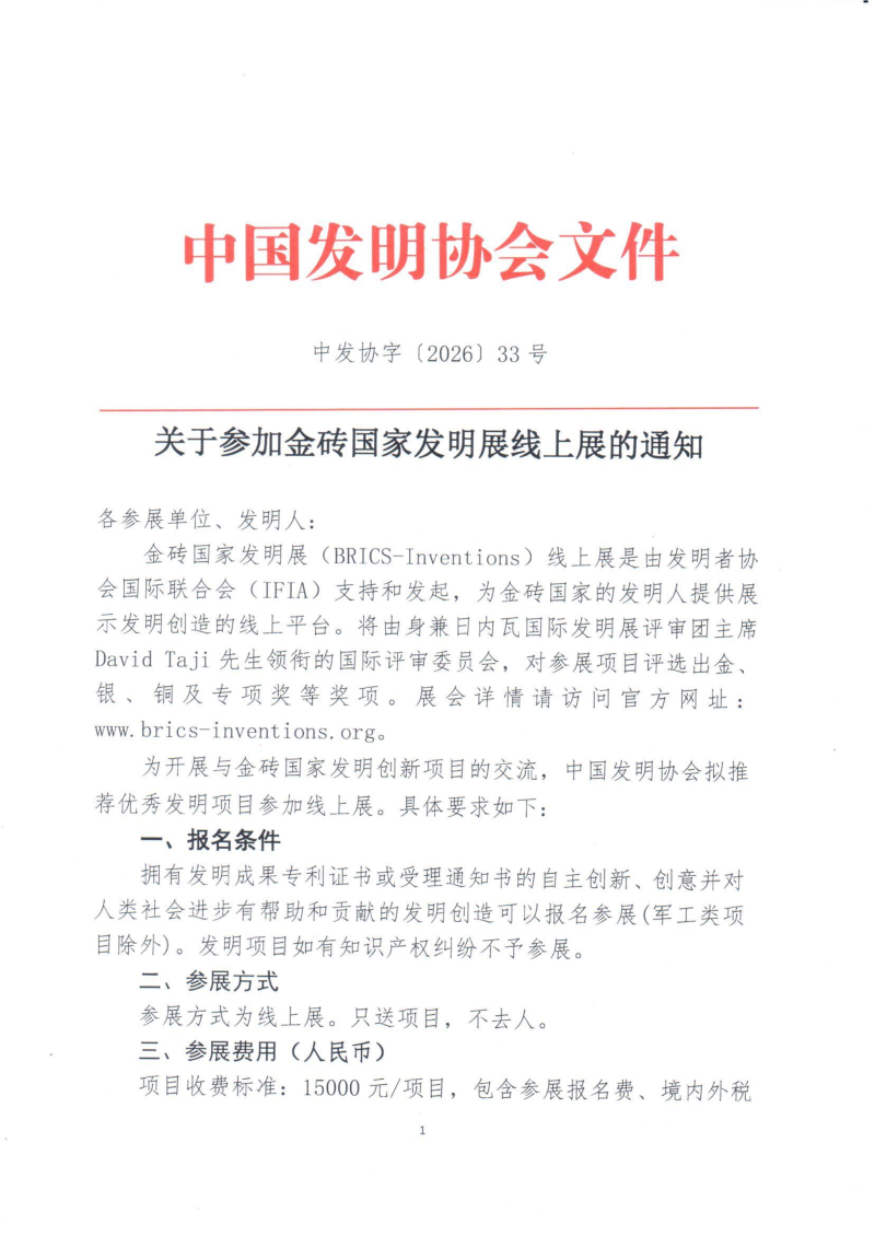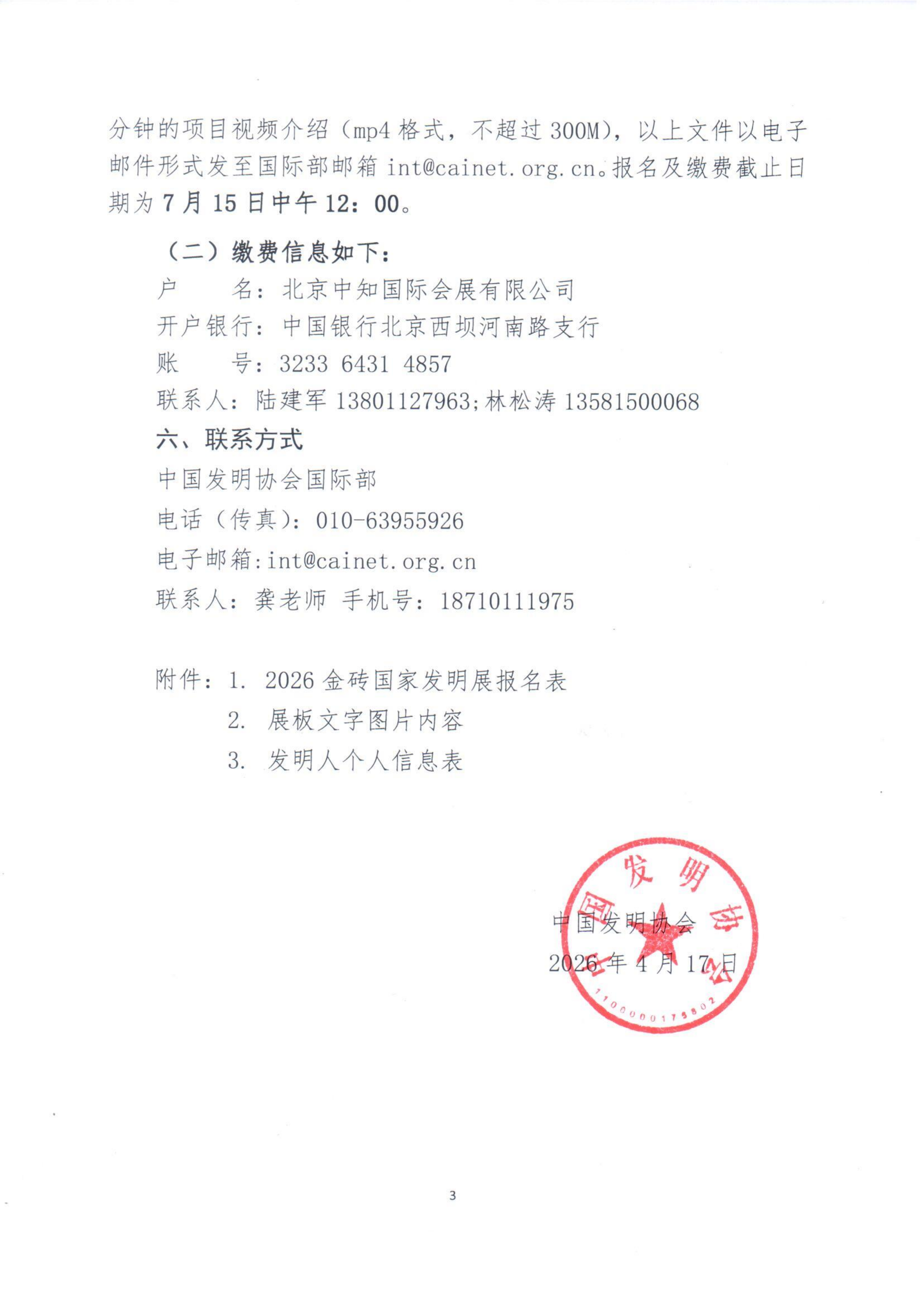 附件1 金砖国家发明展2026线上展报名表 4.17.xlsx附件2 金砖国家发明展2026线上展展板文字图片内容 .docx附件3 金砖国家发明展2026线上展 个人资料表 .docx