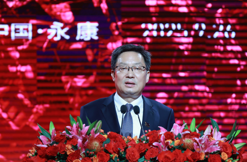 永康市委书记胡勇春在致辞中代表市四套班子和百万新老永康人民,对各级领导嘉宾和广大客商的到来表示欢迎,向长期关心支持永康发展的有关单位和社会各界表示感谢。他说: